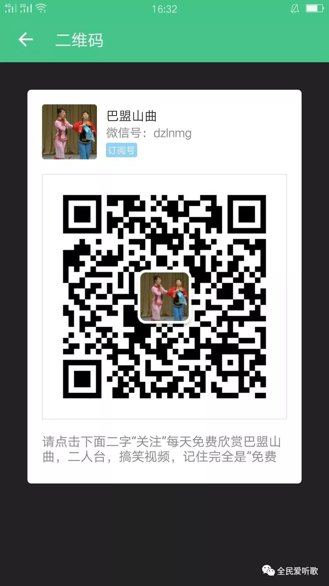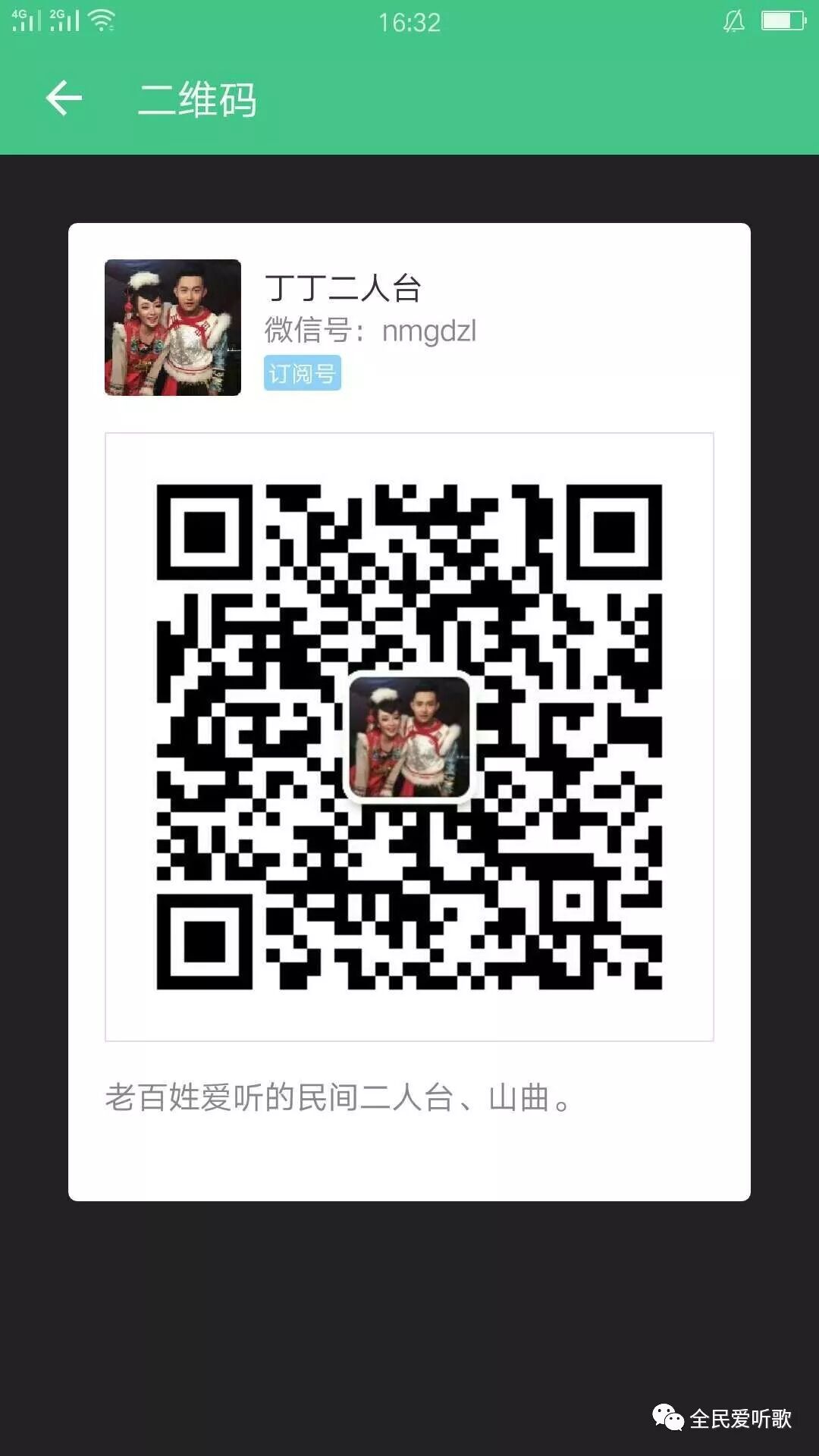识别下面二维码点关注,听各路二人台