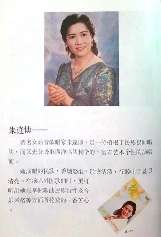 朱逢博先后荣获首届中国金唱片奖,艺术家终身成就奖,中国十大女歌唱家。是中国70-80年代在国内外舞台上最活跃、最有影响的女歌唱家。她在四十余年的歌唱艺术生涯中为我们留下了无数的经典作品,歌声影响几代人,经她演绎过的歌曲包括中外民歌,艺术歌曲,校园歌曲,儿童歌曲,她以演唱风格的多样、抒情富于变化闻名。